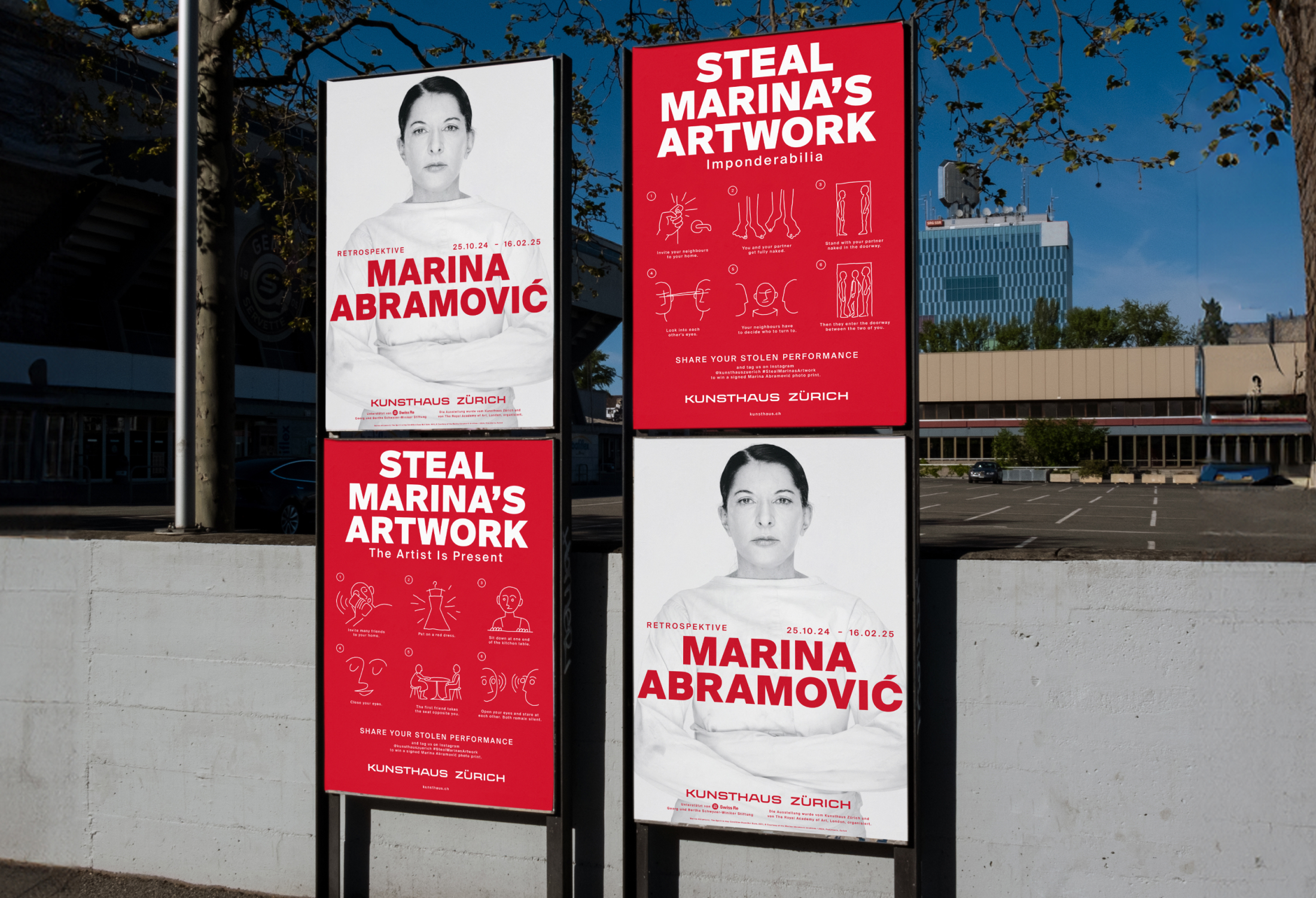 So when the Kunsthaus in Zürich decided to dedicate one of Marina Abramović’ biggest retrsopectives to date to the Serbian-born artist, we wanted to now let the work really do the talking. And as the Kunsthaus Zürich had been all over the news recently because of stolen artworks, we decided to flip the script – and invite everyone to become and art thief by themselves. Under the moniker ‘Steal Marina’s Artwork’, we launched careful instructions on how to recreate three of the artist’s pieces and launched them on Social, Print and Out of Home. Including her monumental work ‘The Artist Is Present’. To finally let Marina’s work transcend from the confines of the museums’ halls as well. And to turn the campaign itself into a piece of collective performance art – that will be part of the retrospective.